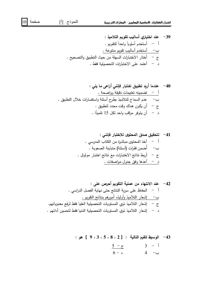 نماذج اختبار القدرة المعرفية العامة تقييم 1