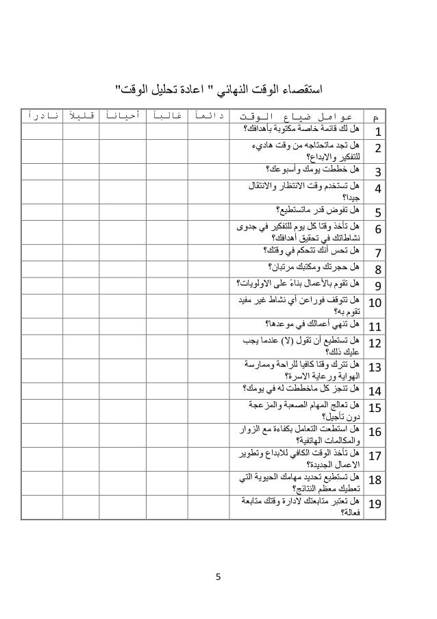 استمارات ادارة الوقت