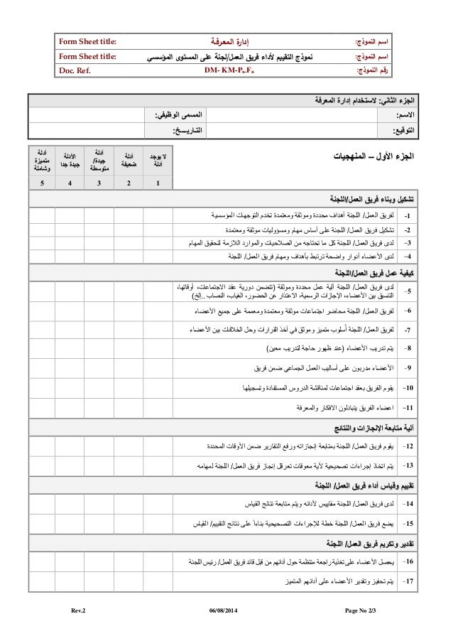 نموذج التقييم لأداء فريق العمل لجنة على المستوى المؤ