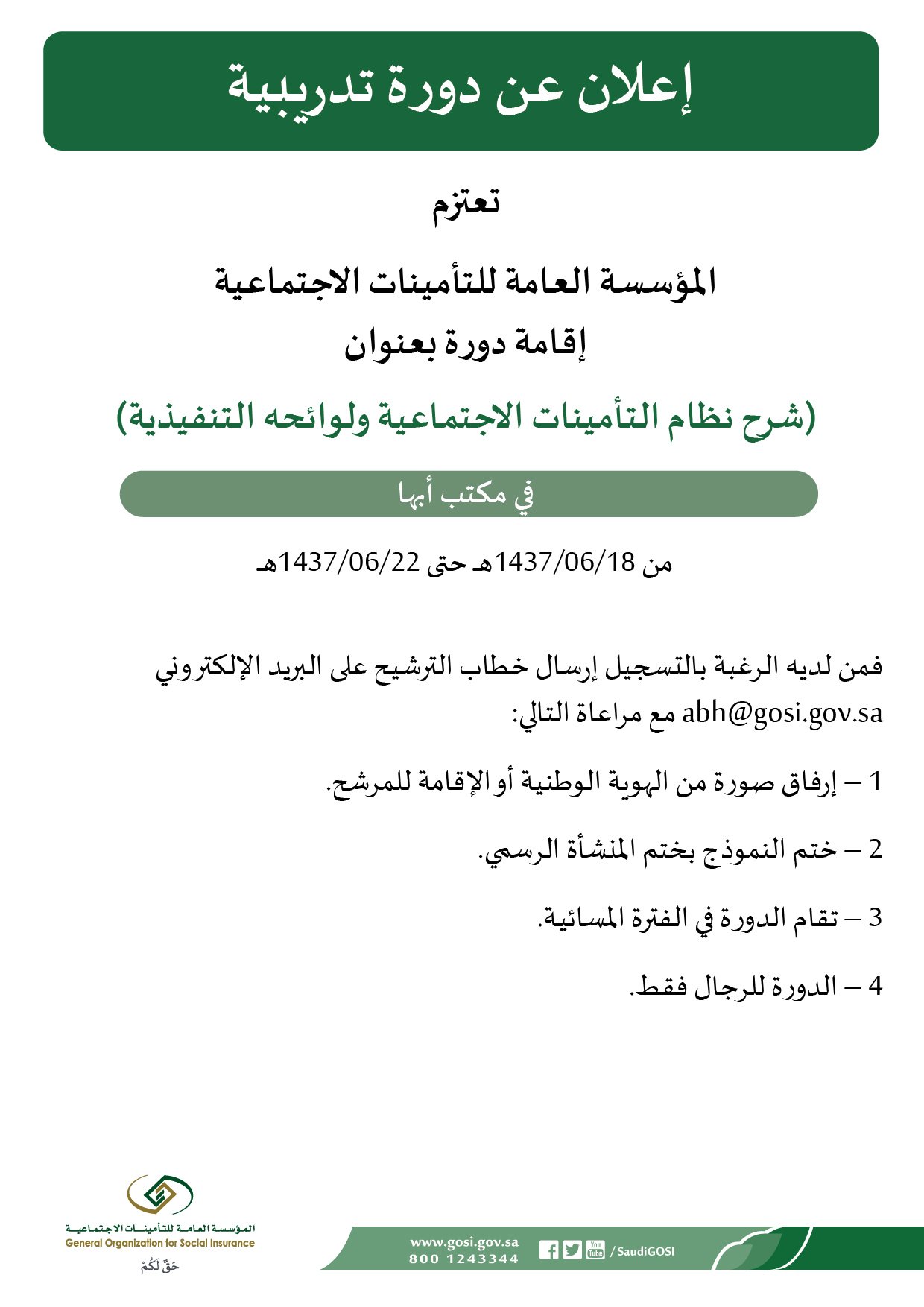 التأمينات الاجتماعية On Twitter مكتب التأمينات الاجتماعية بـ أبها يقيم دورة في شرح نظام التأمينات ولوائحه التنفيذية Https T Co Ieaxt2of2x Https T Co Zavotmqebb